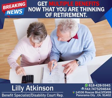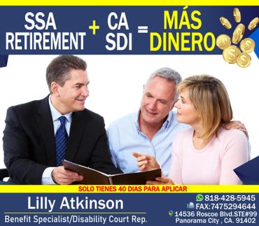 We guide you in all the processes of: Retirement Planning, Appeals SSA Disability, Unemployment Benefits, Court Rep. EDD Unemployment, EDD Disability
